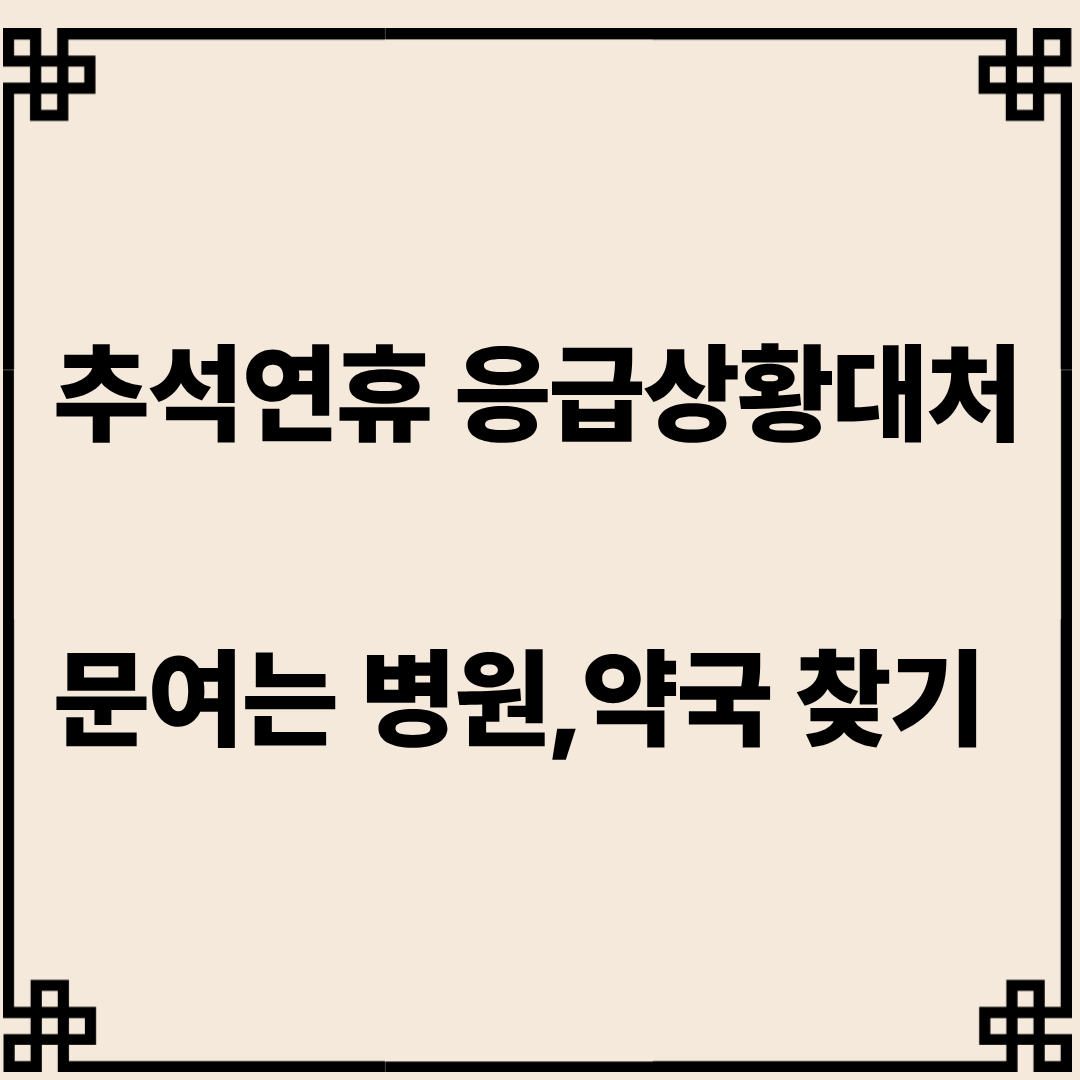 ⚠️ 주의사항: 연휴에는 진료 시간이 변동될 수 있으니, 방문 전에 반드시 해당 병원이나 약국에 전화로 운영 여부와 시간을 확인하고 가시는 것이 안전합니다.